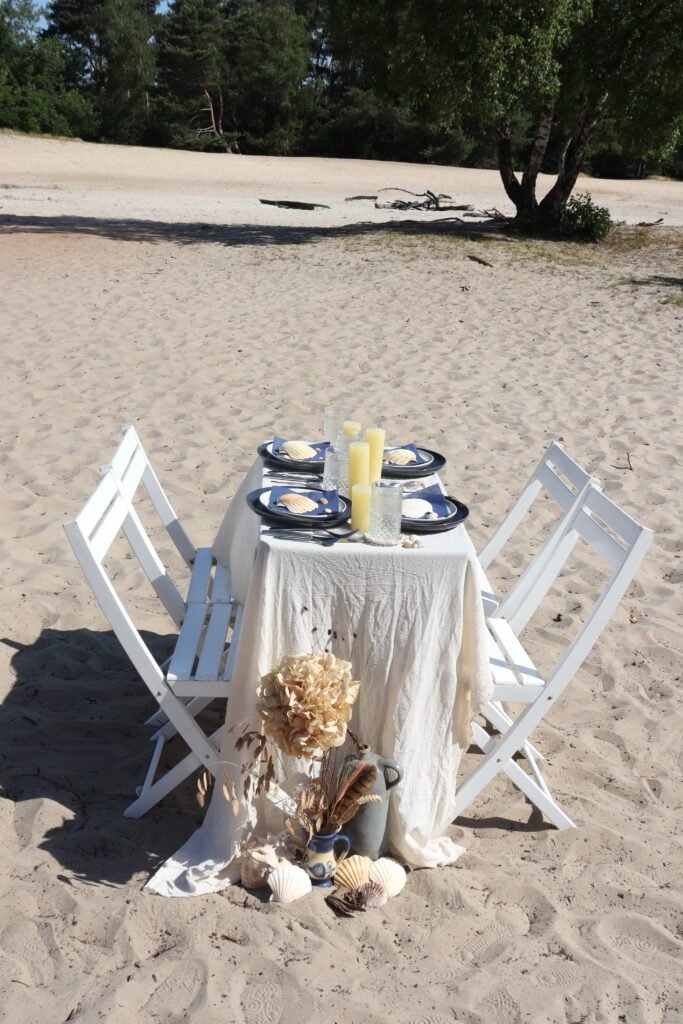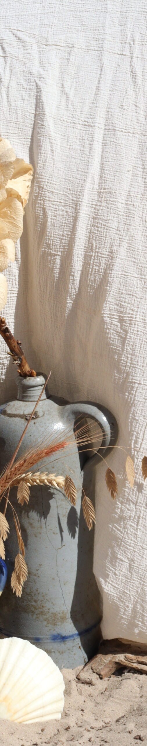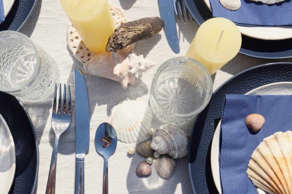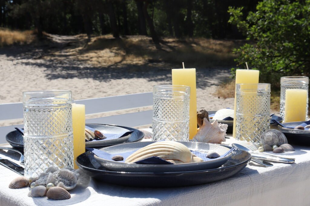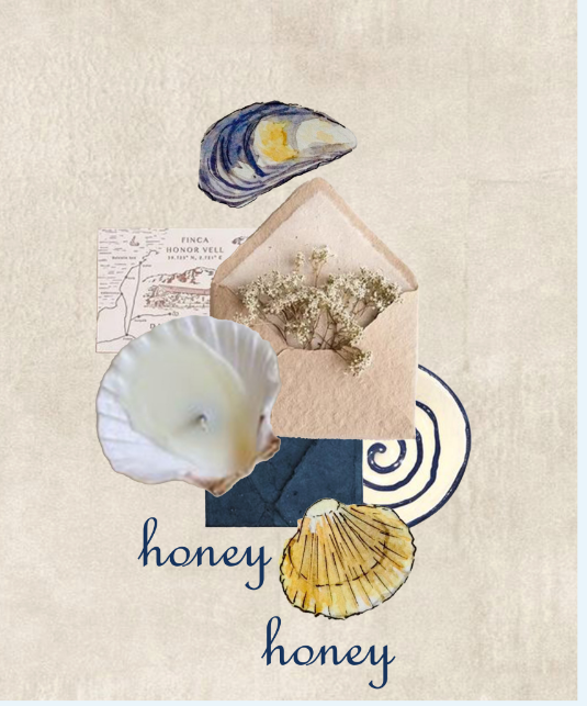 “The concept name ‘Honey Honey’ is inspired by the iconic Abba/Mamma Mia song. Honey Honey combines a rustic, traditional Mediterranean vibe with a beachy feel, creating a fresh yet welcoming atmosphere. The traditional Mediterranean white is replaced with a sandy beige, making the concept sleeker and more modern than the detailed motifs of the traditional style. The blue and yellow are less saturated to avoid stark contrasts. The ambiance is completed with shells and heather flowers.”